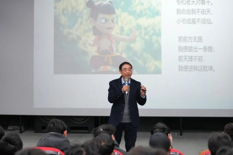 楊劍虹教授以《哪吒之魔童鬧海》的全球熱映為(wei) 切入點,指出“我命由我不由天”的呐喊是中華民族自強不息精神的時代回響;從(cong) “扭秧歌機器人”現象出發,引導同學們(men) 思考科技創新背後的人文意義(yi) ,激發對科技與(yu) 創新的興(xing) 趣;從(cong) “DeepSeek動了誰的奶酪”,分析了人工智能領域的突破及其行業(ye) 影響,強調科技創新的重要性,鼓勵同學們(men) 關(guan) 注前沿科技,培養(yang) 創新思維,積極投身科技浪潮,為(wei) 國家進步貢獻力量。